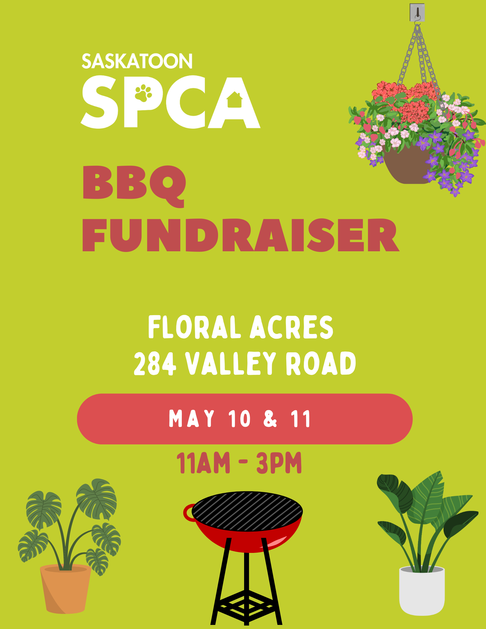 Give Mom a special treat—and help animals in need! Join us at Floral Acres Greenhouse for a delicious Saskatoon SPCA barbecue and browse spring’s brightest blooms.