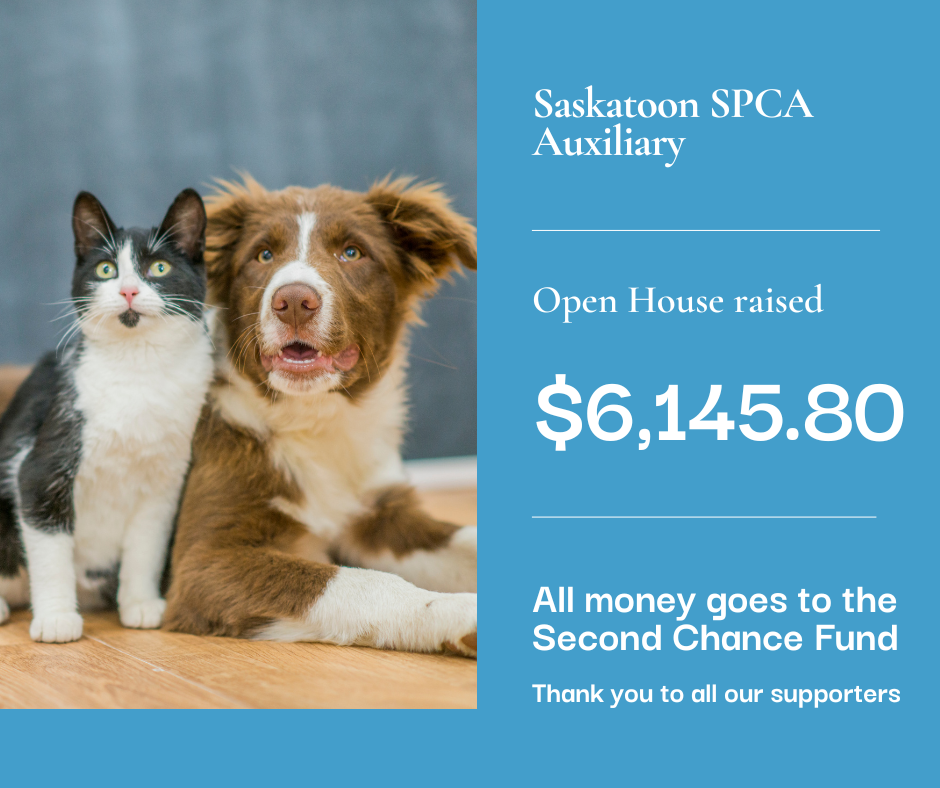 Our Christmas Open House raised $4,282.50 for the Saskatoon SPCA Second Chance Fund. Thanks to the generosity of our community and the hard work of our Ladies Auxiliary, these funds will help provide medical care for animals whose needs would normally be beyond what we can afford. Every dollar helps give vulnerable animals the care and second chance they deserve.